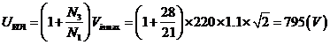 根據(jù)單端正激式變換器計開關管VT1承受最大電壓公式得: